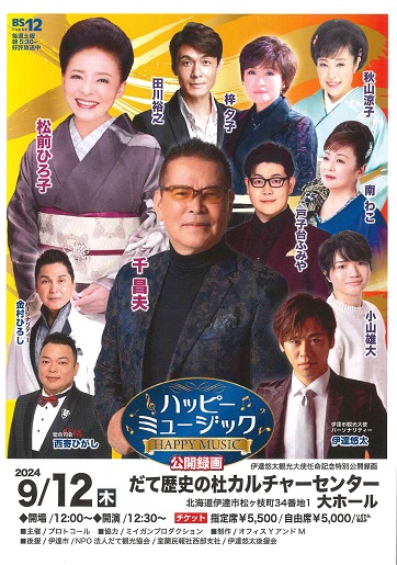 sBS12ŒöŠJŽû˜^t uƒnƒbƒs[ƒ~ƒ…[ƒWƒbƒNv ‰ïêF‚¾‚Ä—ðŽj‚Ì“mƒJƒ‹ƒ`ƒƒ[ƒZƒ“ƒ^[E‘åƒz[ƒ‹ @@@i–kŠC“¹ˆÉ’BŽs¼ƒ–Ž}’¬34-1j@@ @ ŠJêF‚P‚QF‚O‚O^ŠJ‰‰F‚P‚QF‚R‚O ƒ`ƒPƒbƒgFŽw’èÈ5500@Ž©—RÈ5000@@ @ ‚¨–â‚¢‡‚킹F‚O‚Ri‚T‚T‚U‚Rj‚P‚T‚S‚T@i•½“ú‚P‚RF‚O‚O`‚P‚VF‚O‚Oj |
